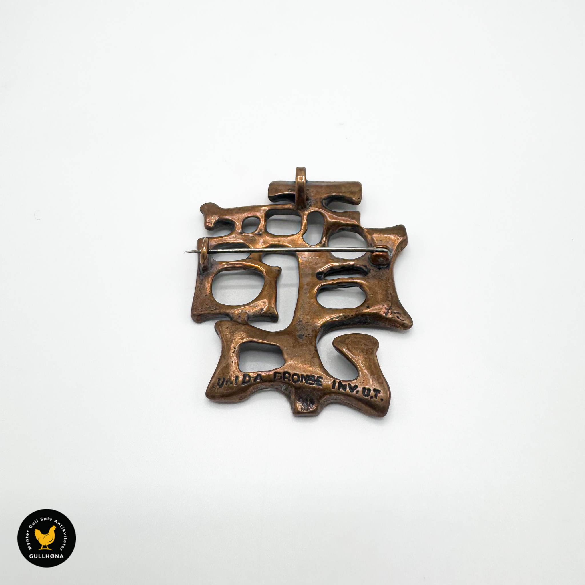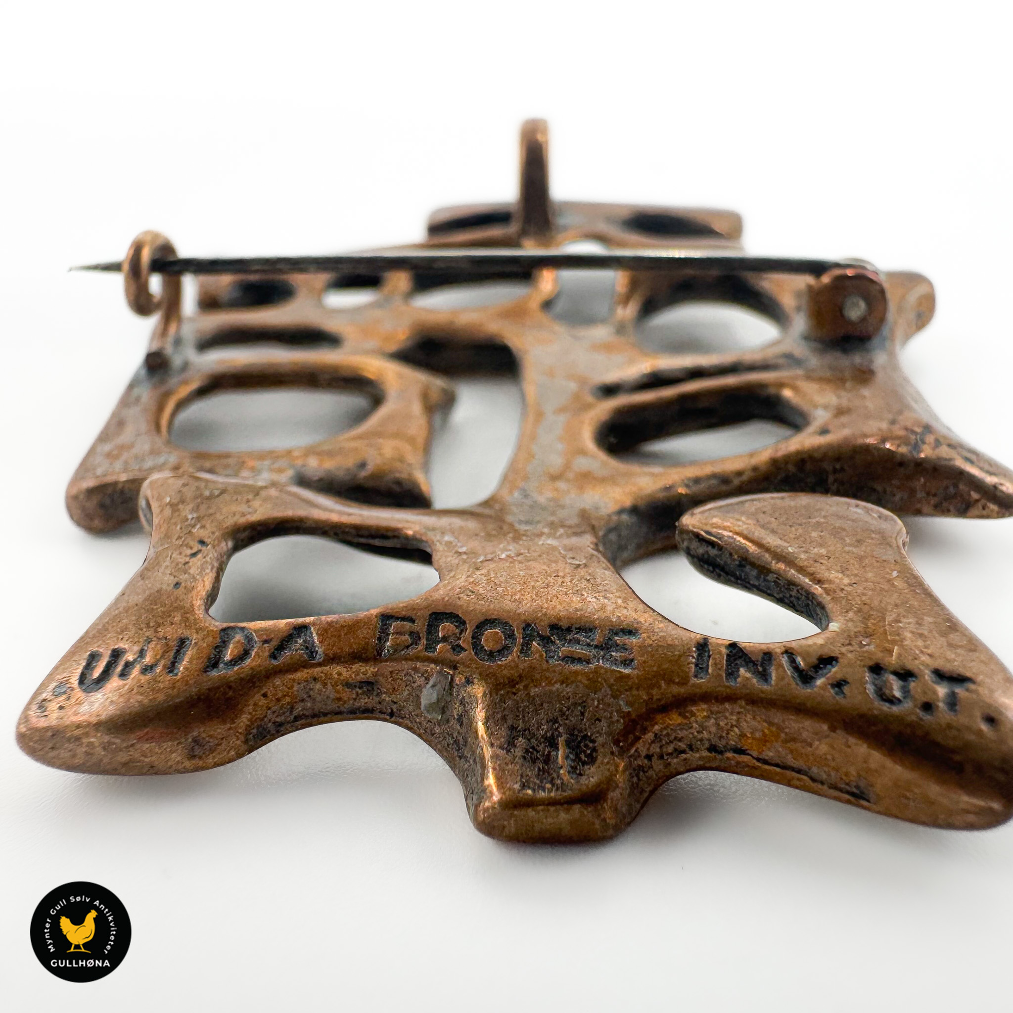 Stemplet: Uni D-A, bronse, INV. U.T