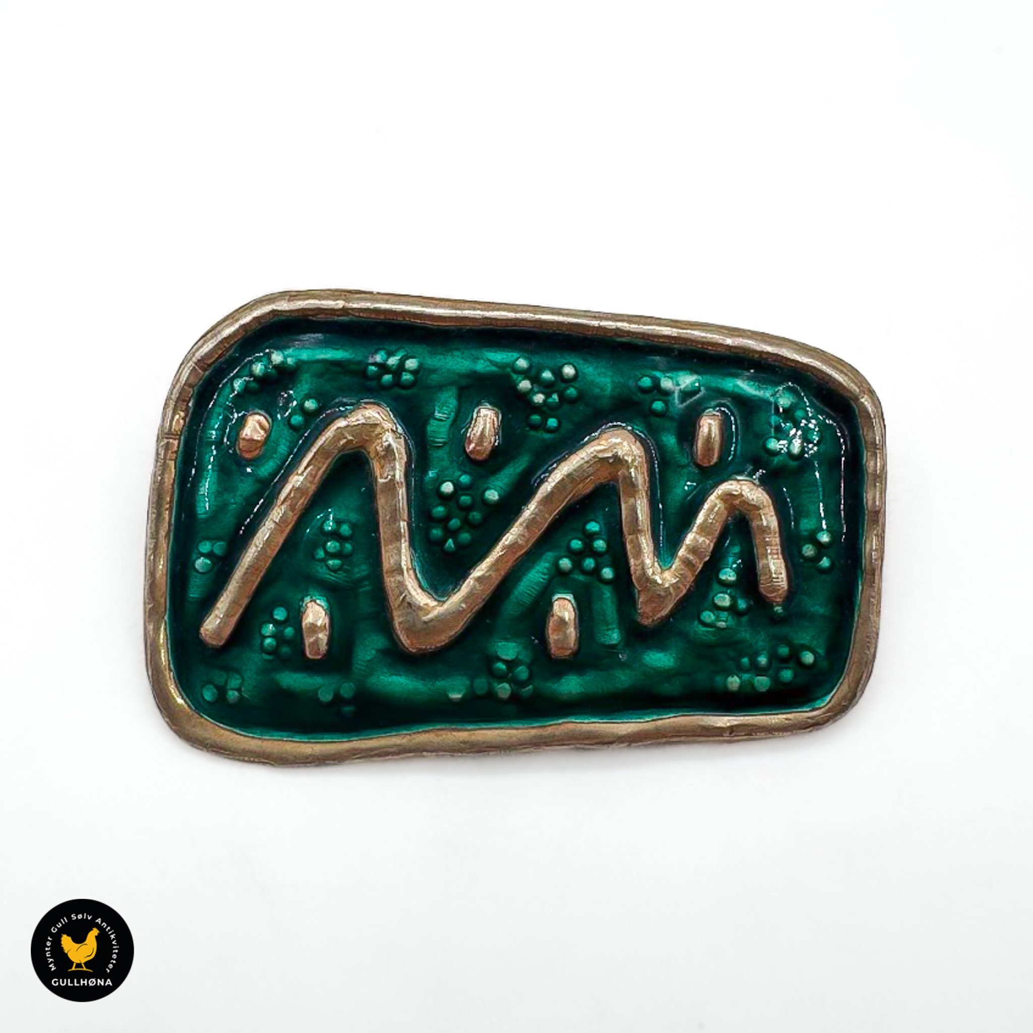Brosje i forgylt sølv med blå/grønn emalje – Balle