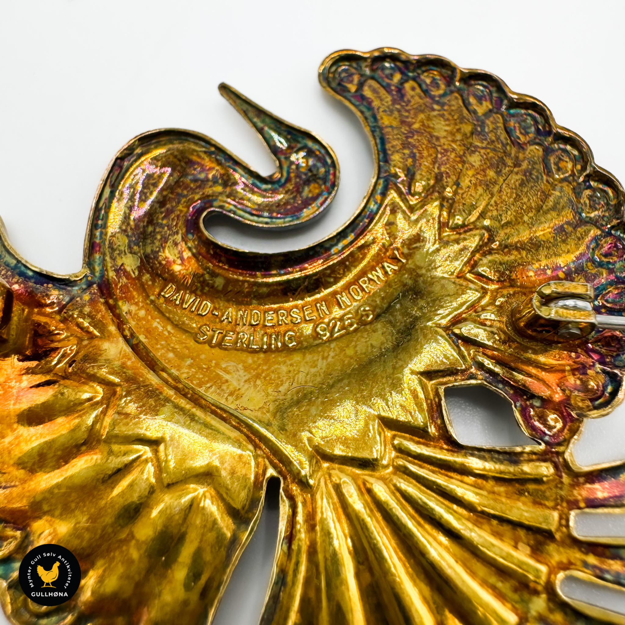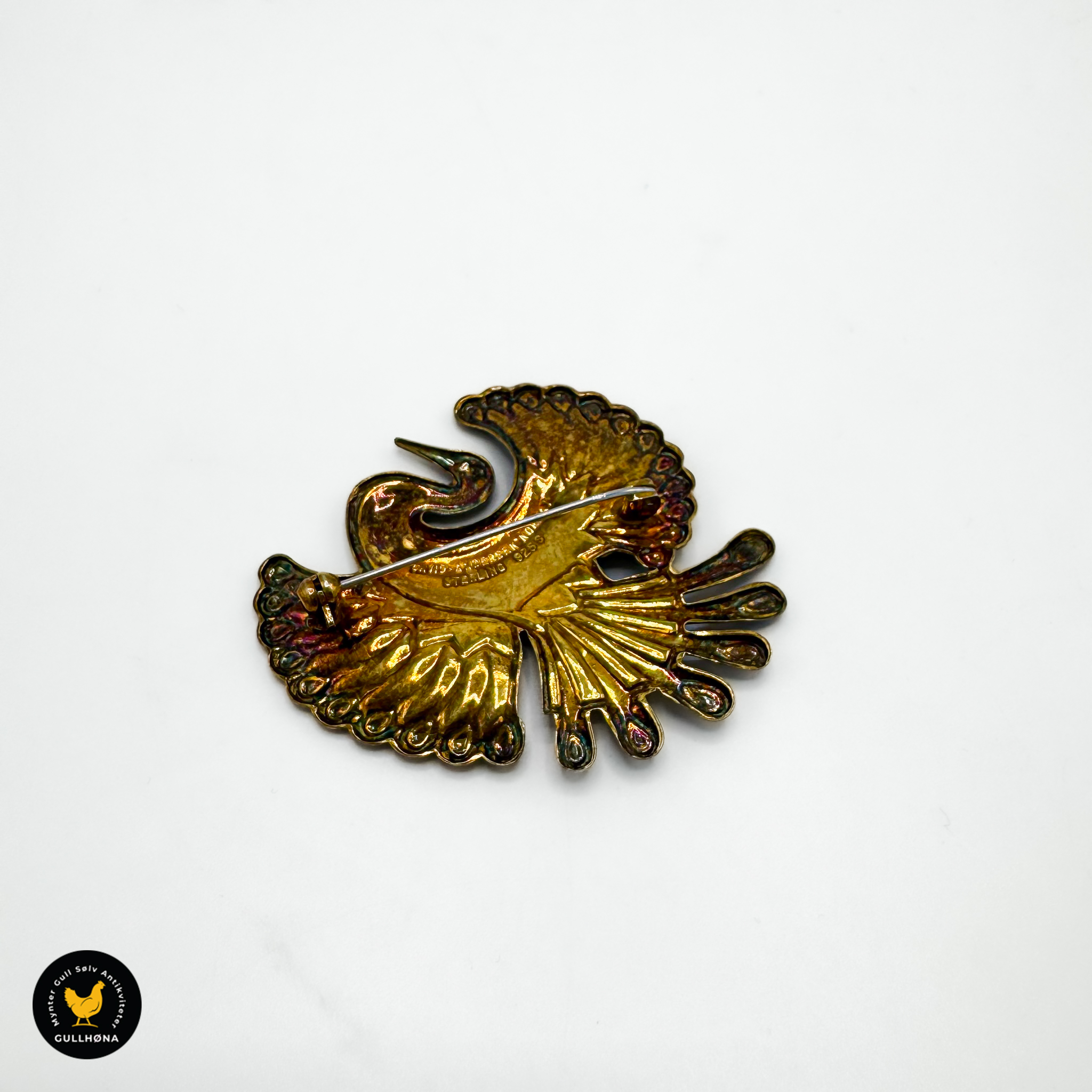 Nydelig påfuglformet brosje fra D-A!