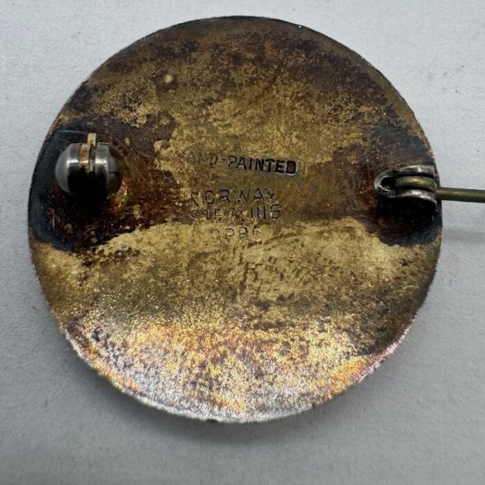 Brosje i forgylt sølv med emalje.