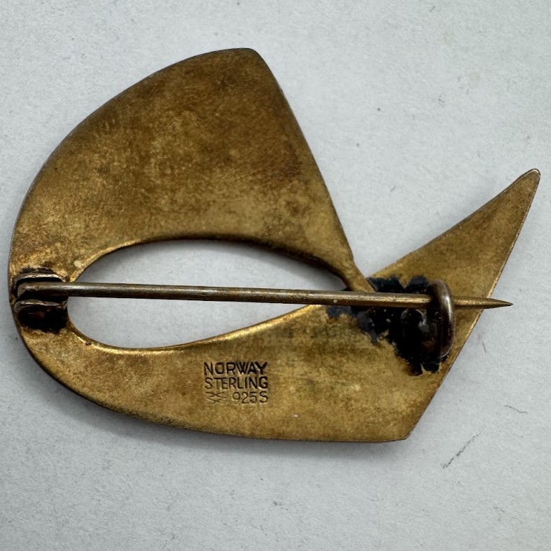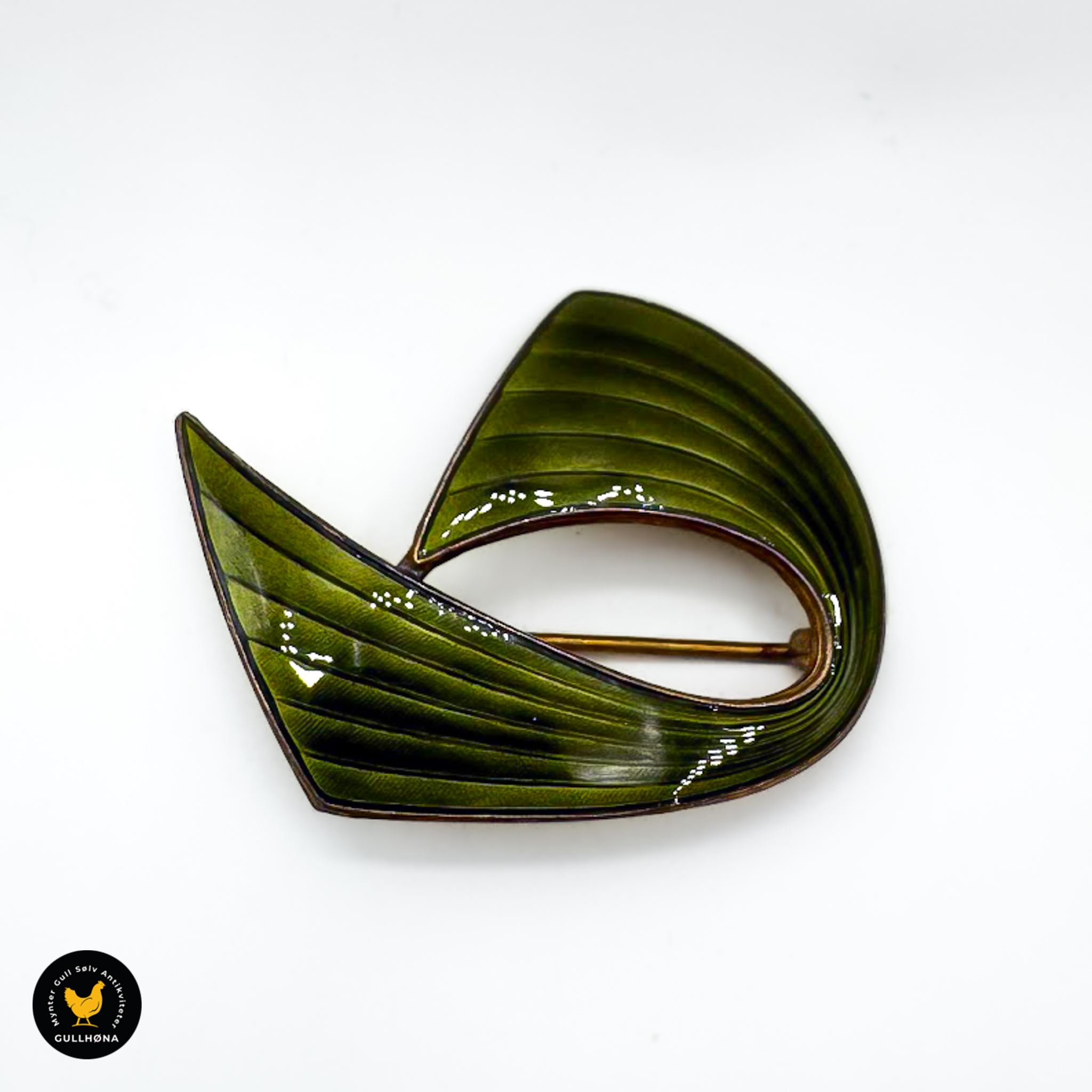Brosje i forgylt sølv med grønn emalje – Aksel Holmsen