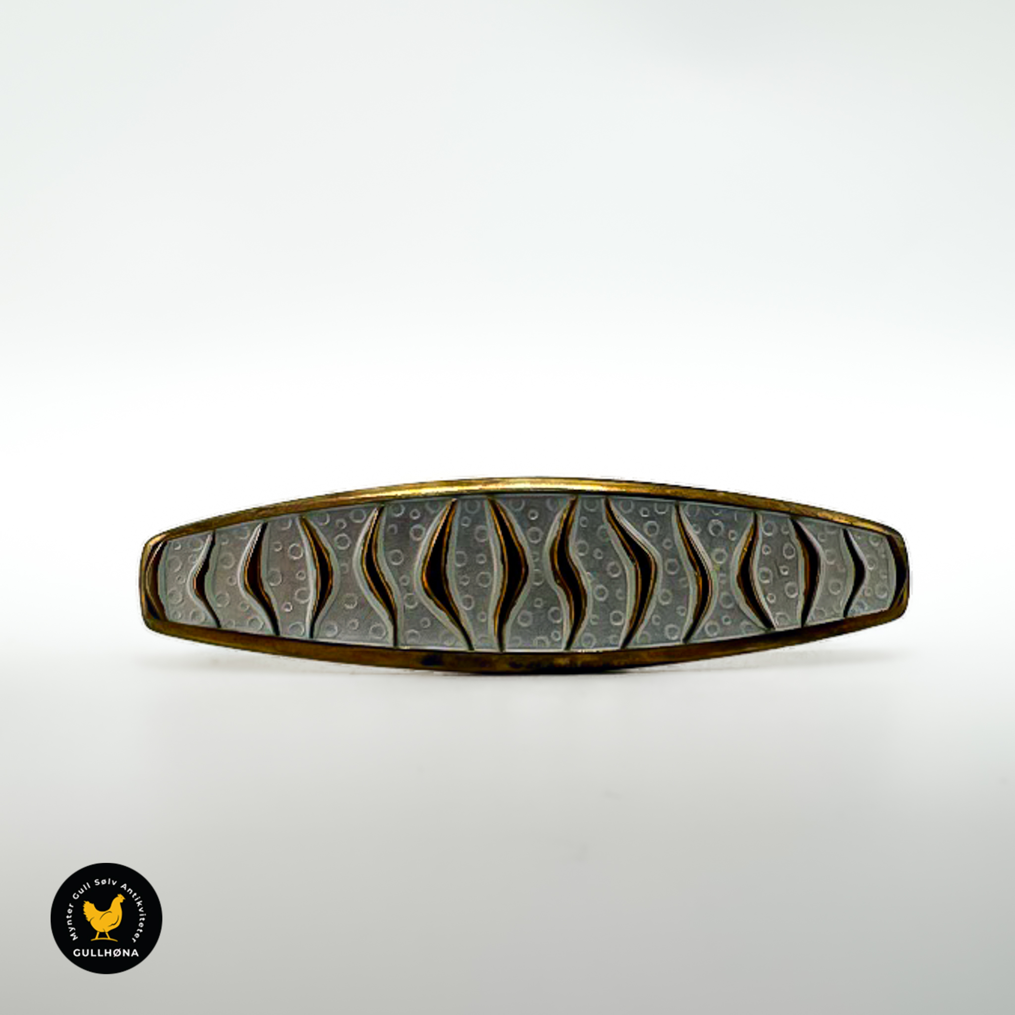 Brosje i forgylt sølv med hvit emalje – Albert Scharning