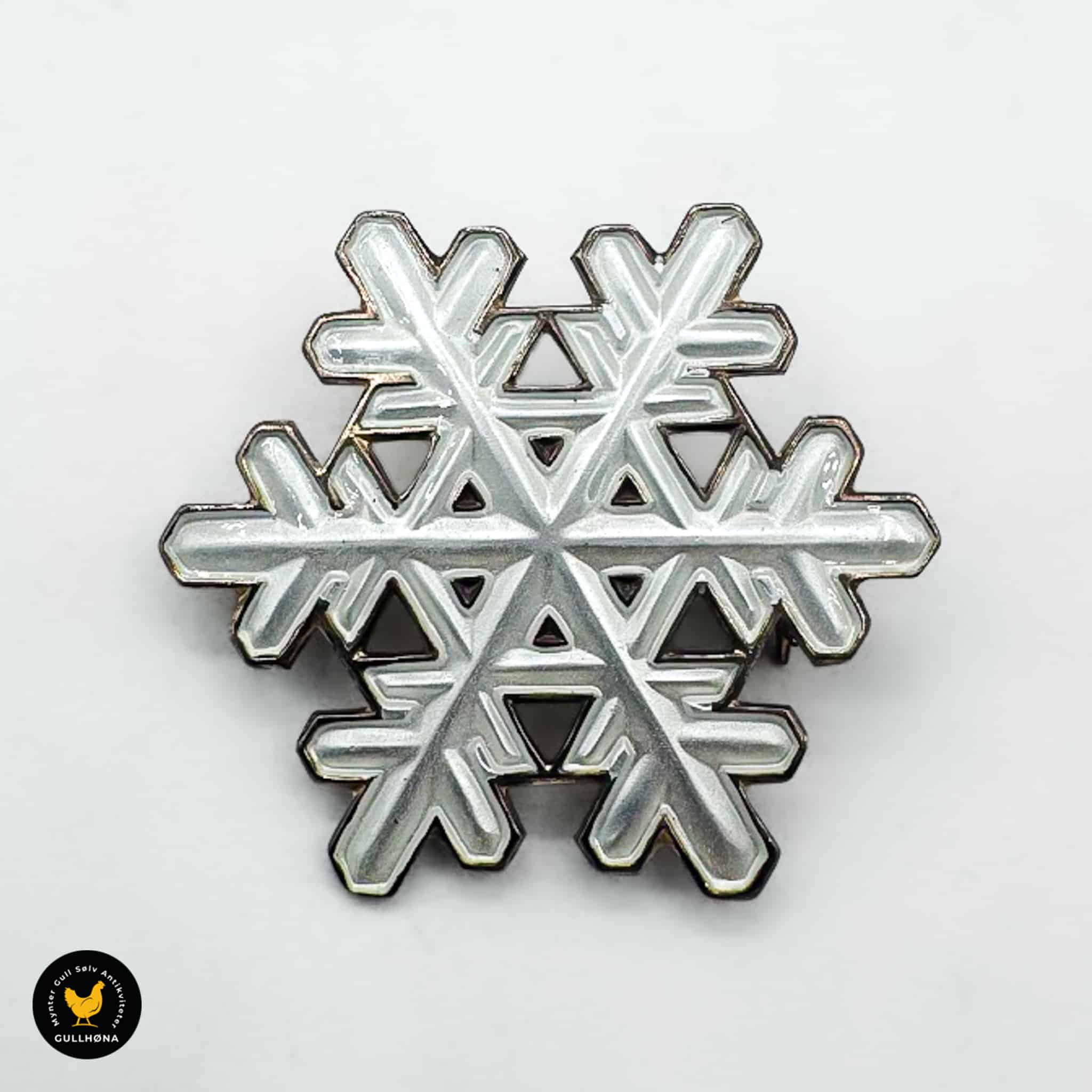 Brosje i sølv med hvit emalje - Snøkrystall - David Andersen