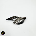 Størrelse: ca. 6.0 x 2.7 cm. Litt vanskelig å få eksakt mål på grunn av detaljene på brosjen.