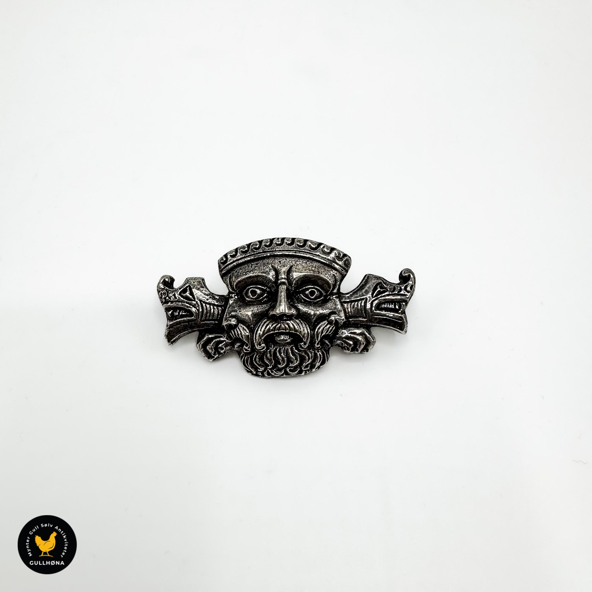 Domkirkehode brosje i sølv
