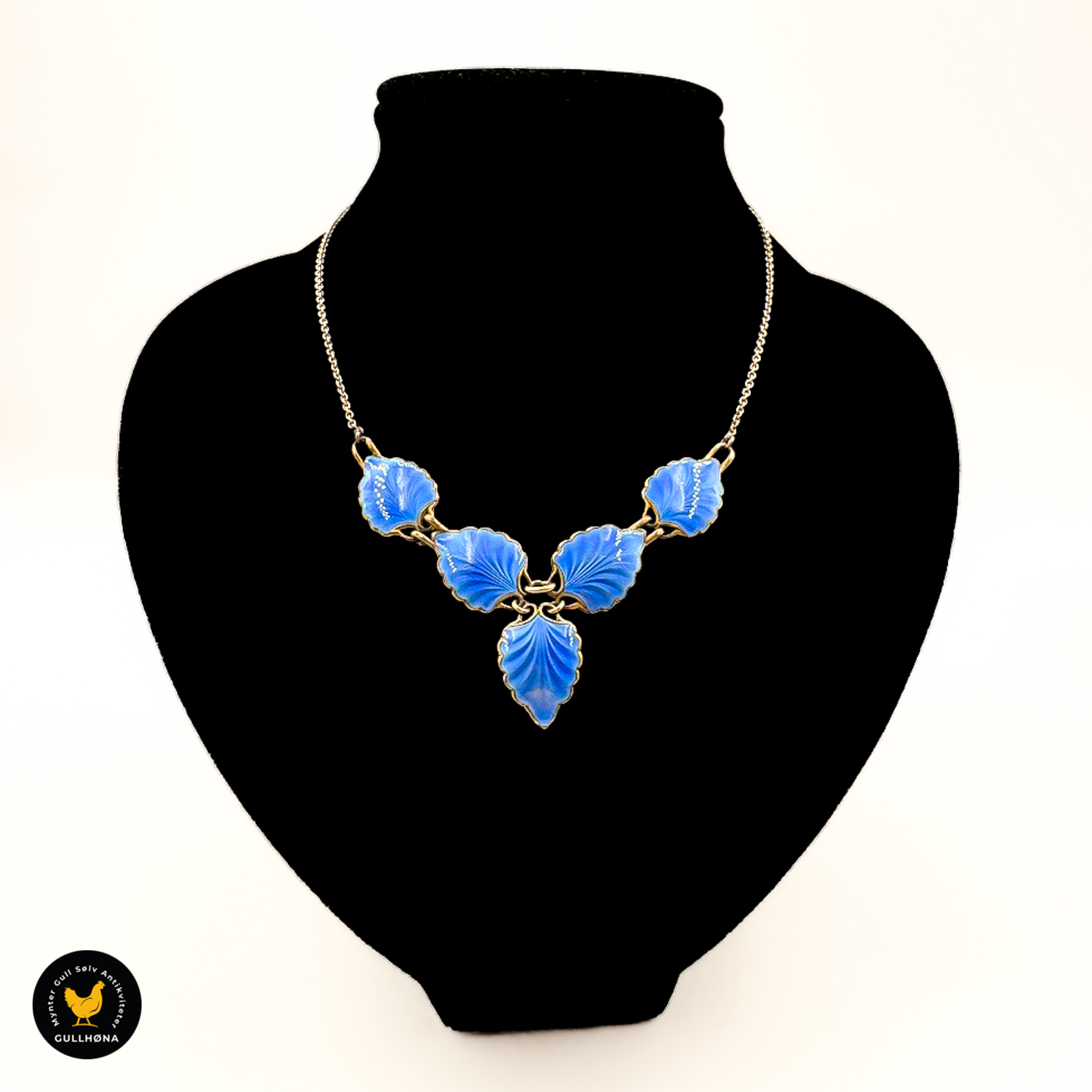 Halssmykke i forgylt sølv med blå emalje - Finn Jensen