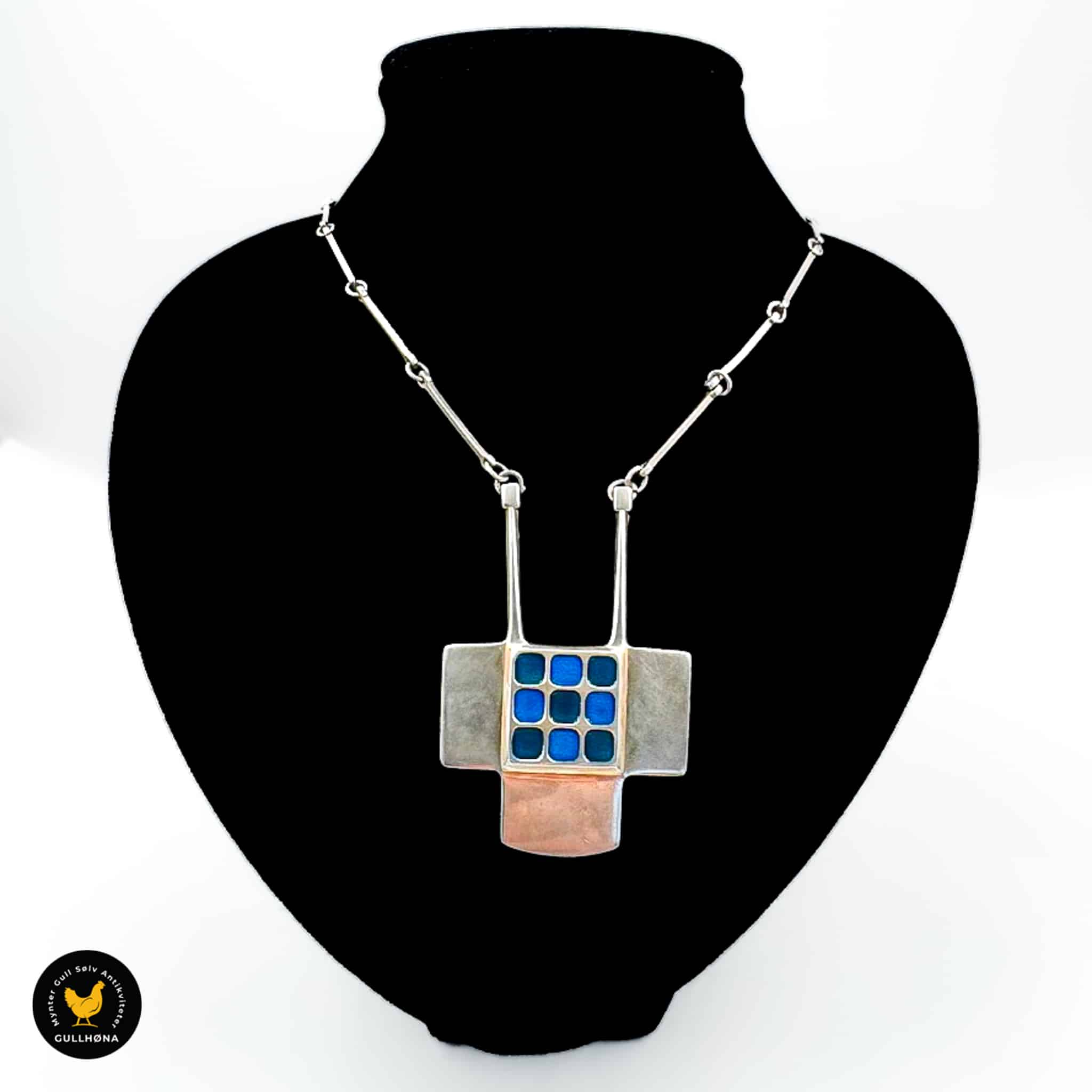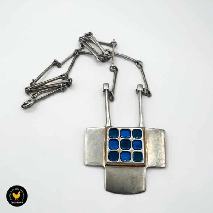 Halssmykke i sølv med blå emalje