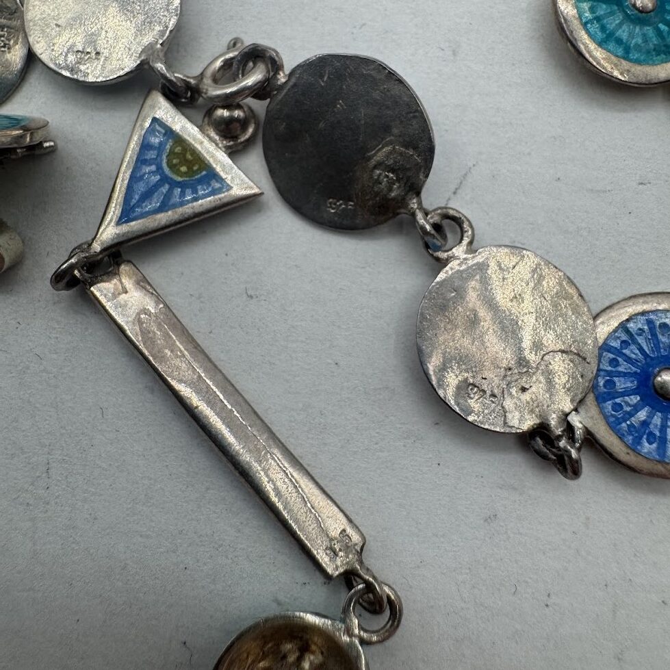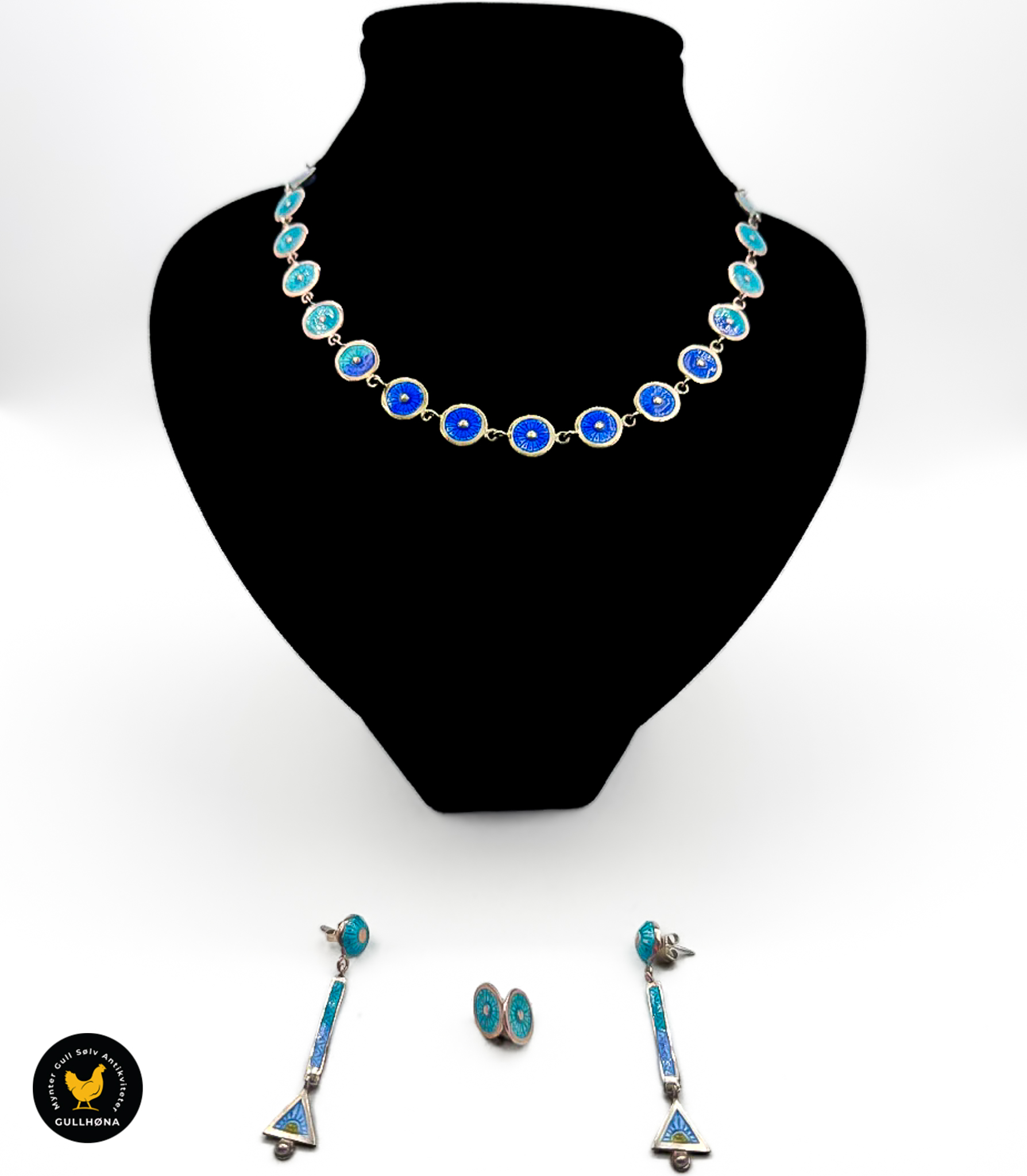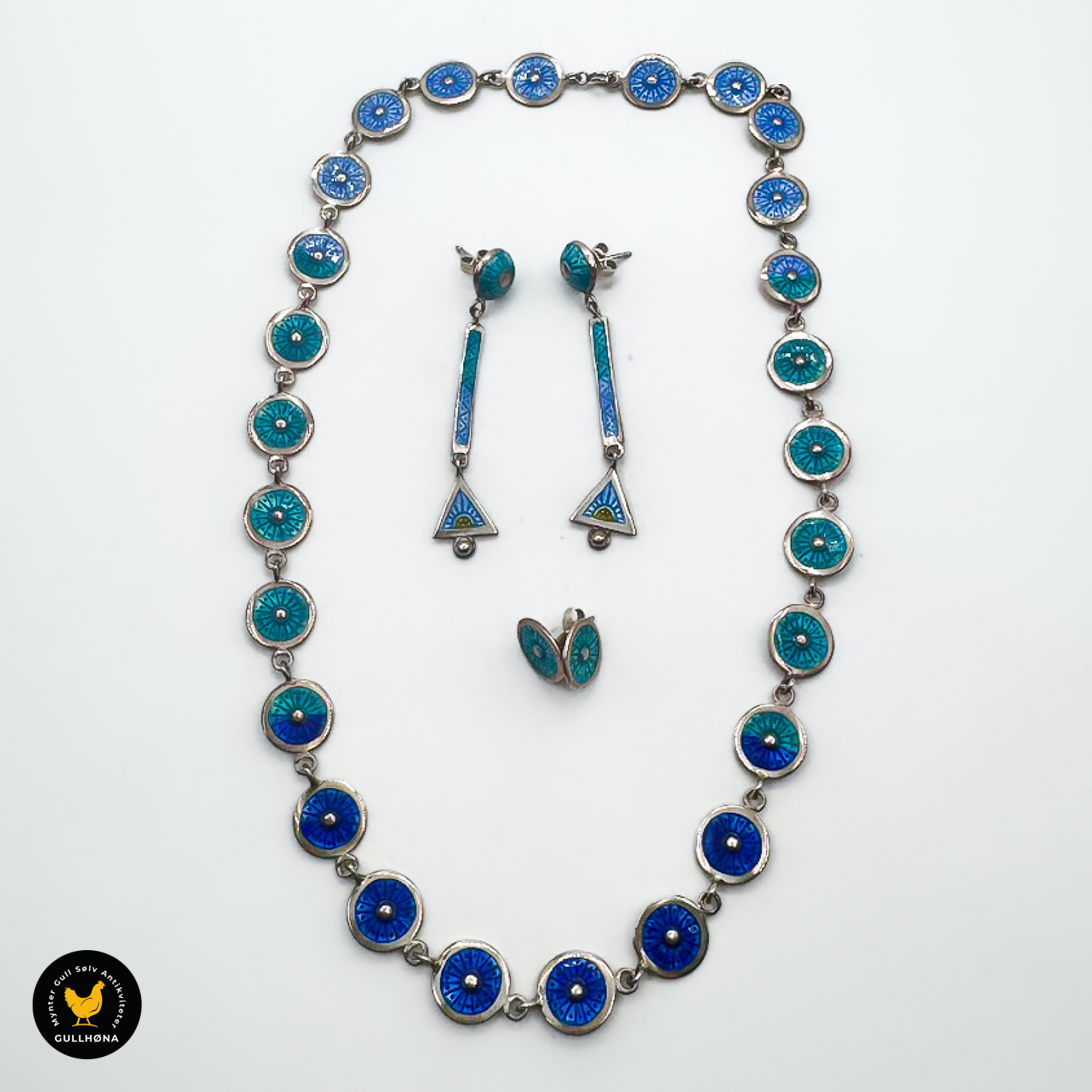 Sett i sølv med flerfarget med emalje med smykke og 2 sett med ørepynt