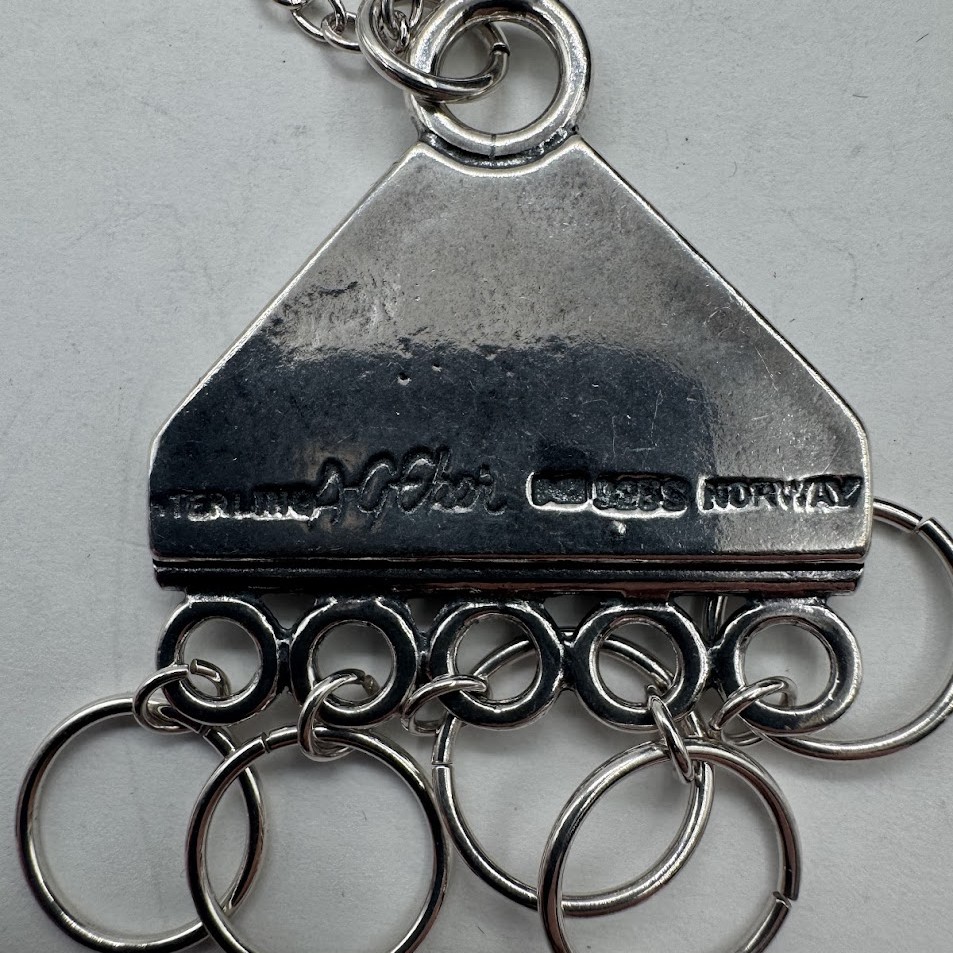 Kjedet som medfølger er ca 61,5 cm langt. Det er stemplet 925 s (sølv).