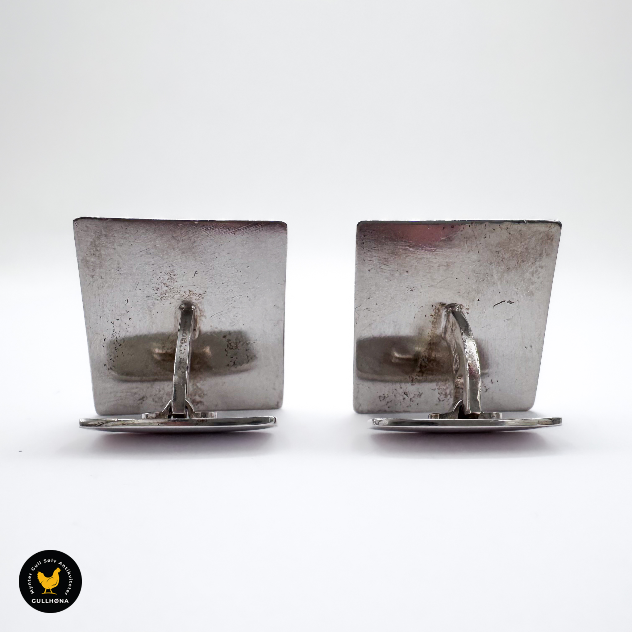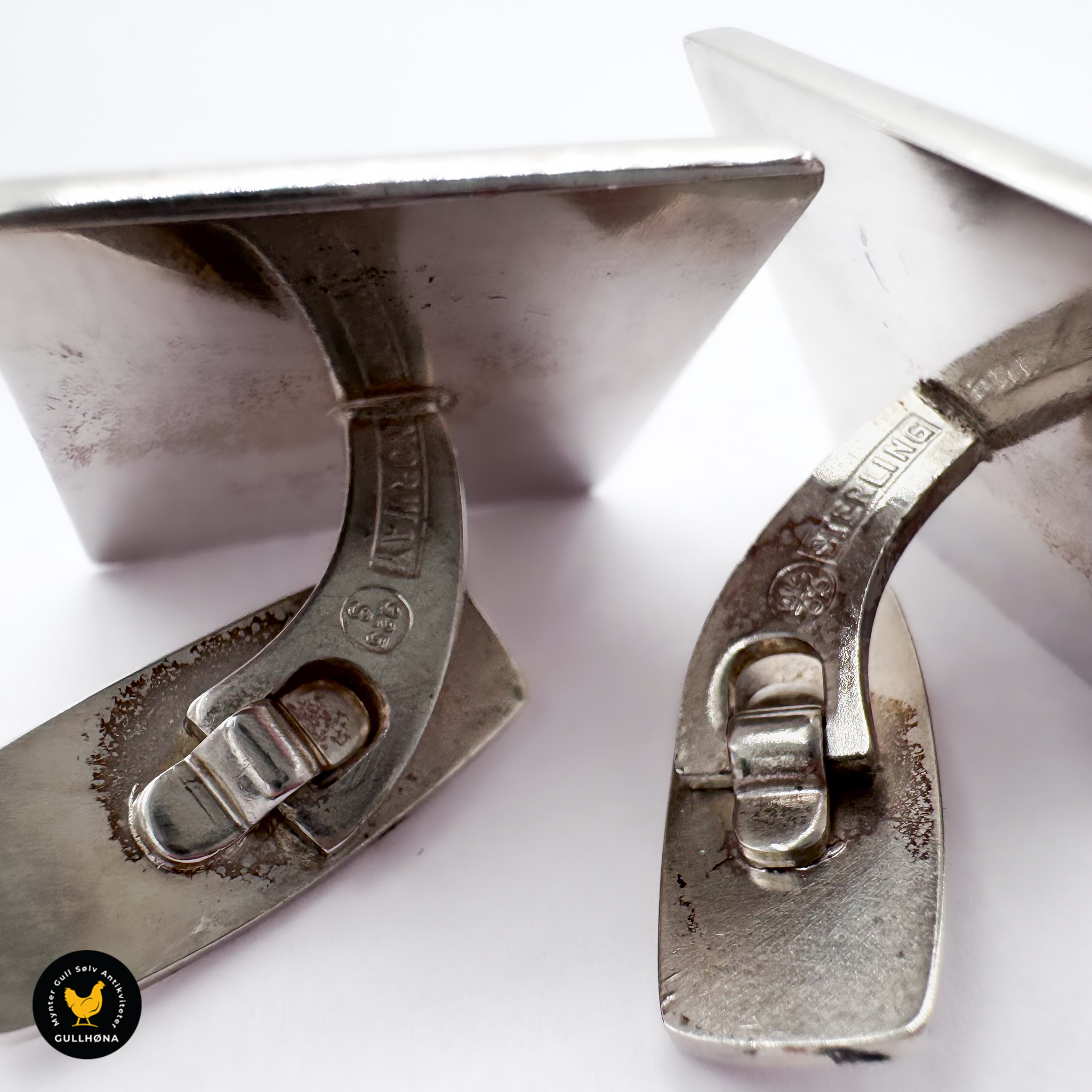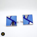 Mansjettknapper i sølv med blå emalje - David-Andersen