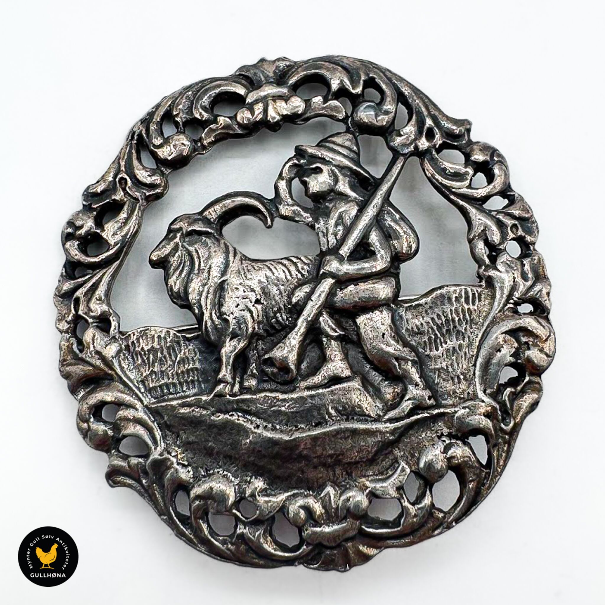 Nasjonalromantisk brosje i tinn - Nils og Blåmann