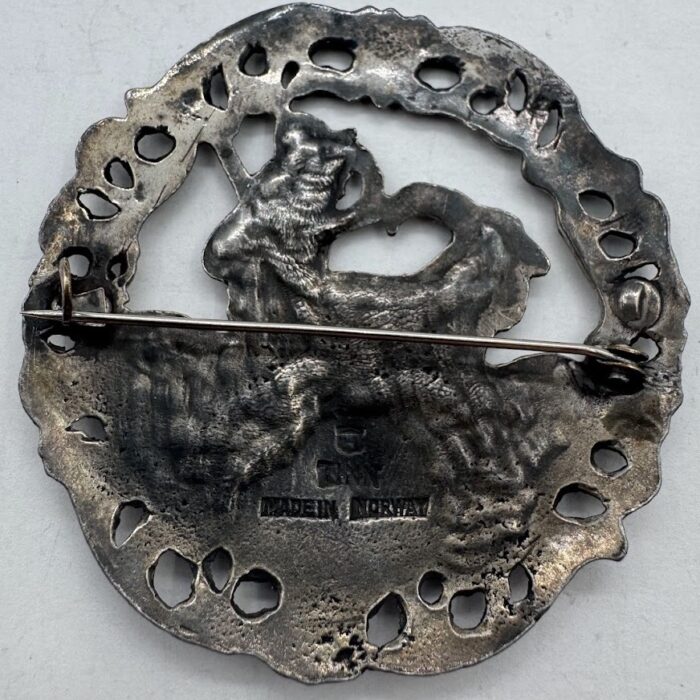 Nasjonalromantisk brosje i tinn – Nils og Blåmann