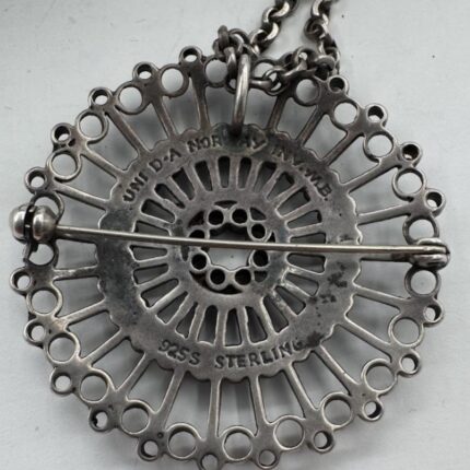Brosje/Anheng i sølv med kjede – Uni D-A, M.B