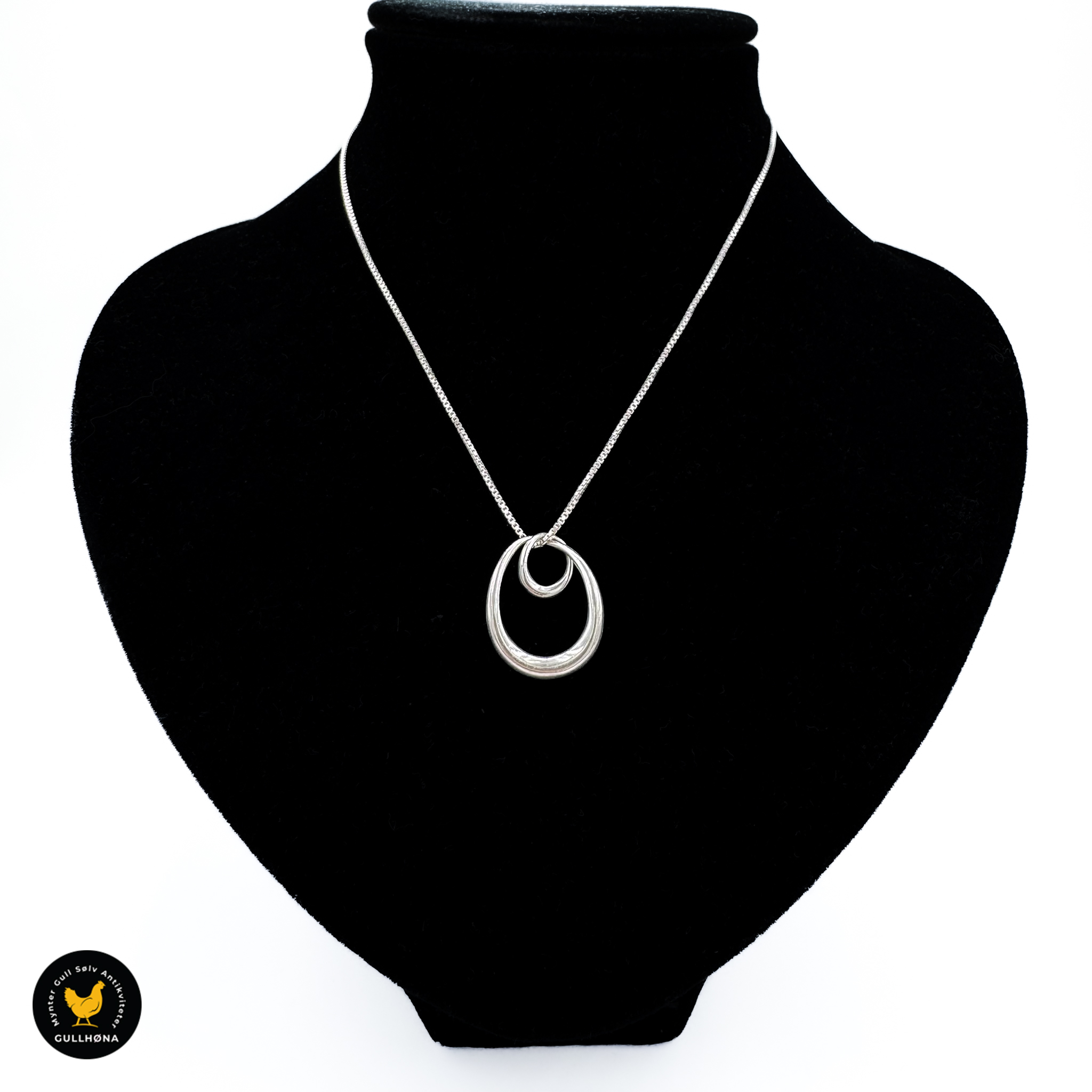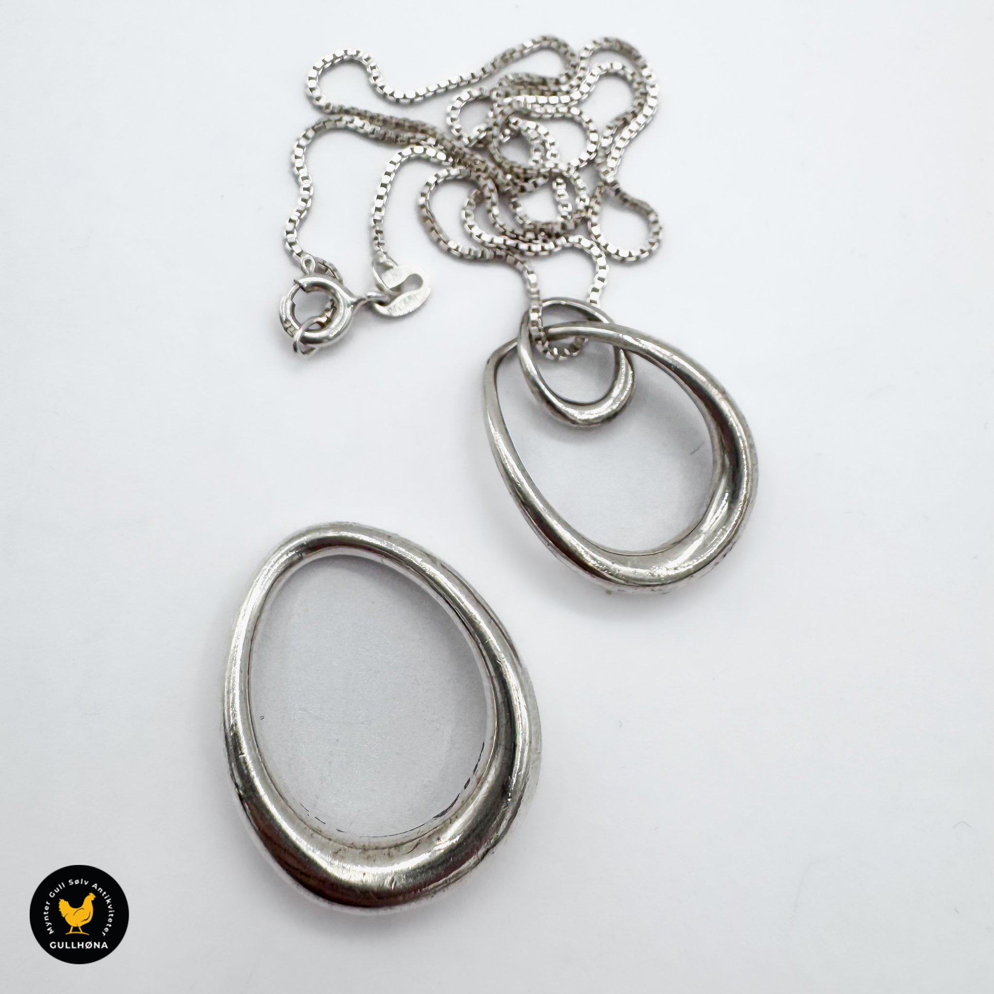 Halssmykke i forgylt sølv med hvit emalje – Aksel Holmsen