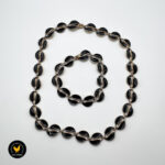 Lengde kjede: ca. 44,0 cm. Lengde armbånd: ca. 19,0 cm. Hvert dobbelbladet ledd (inkl. øredobbene) er ca. 1,8 X 1,4 cm.